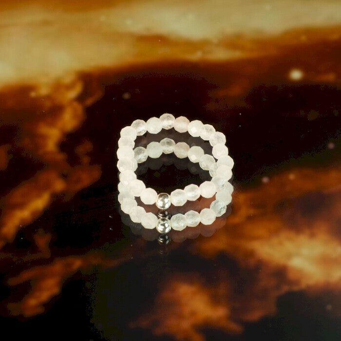 Le Coffret de Bagues Amour & Flamme joue sur le contraste entre douceur et intensité, combinant Quartz Rose et Rubis pour une palette chaude et expressive.
