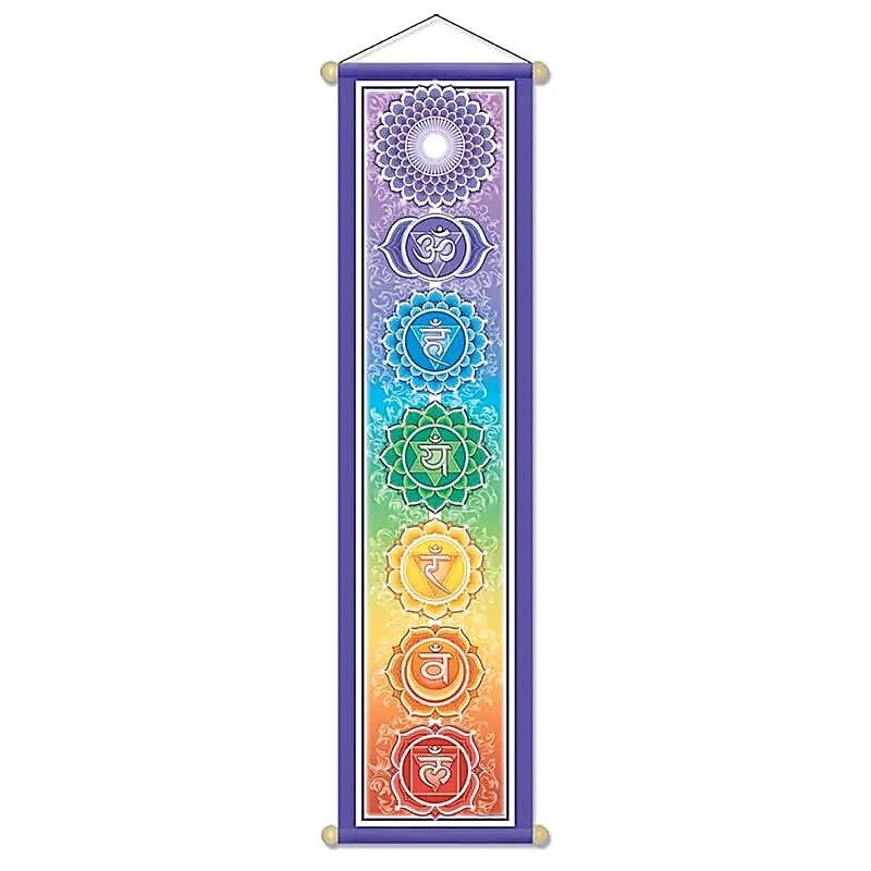 Très jolie bannière des Chakra en polyester doux, peint en couleurs vives.